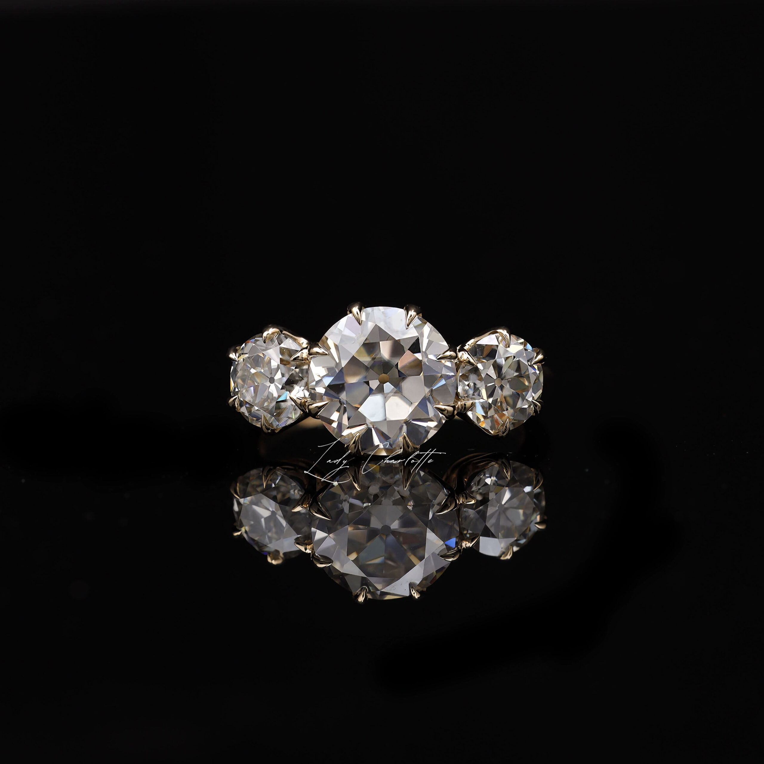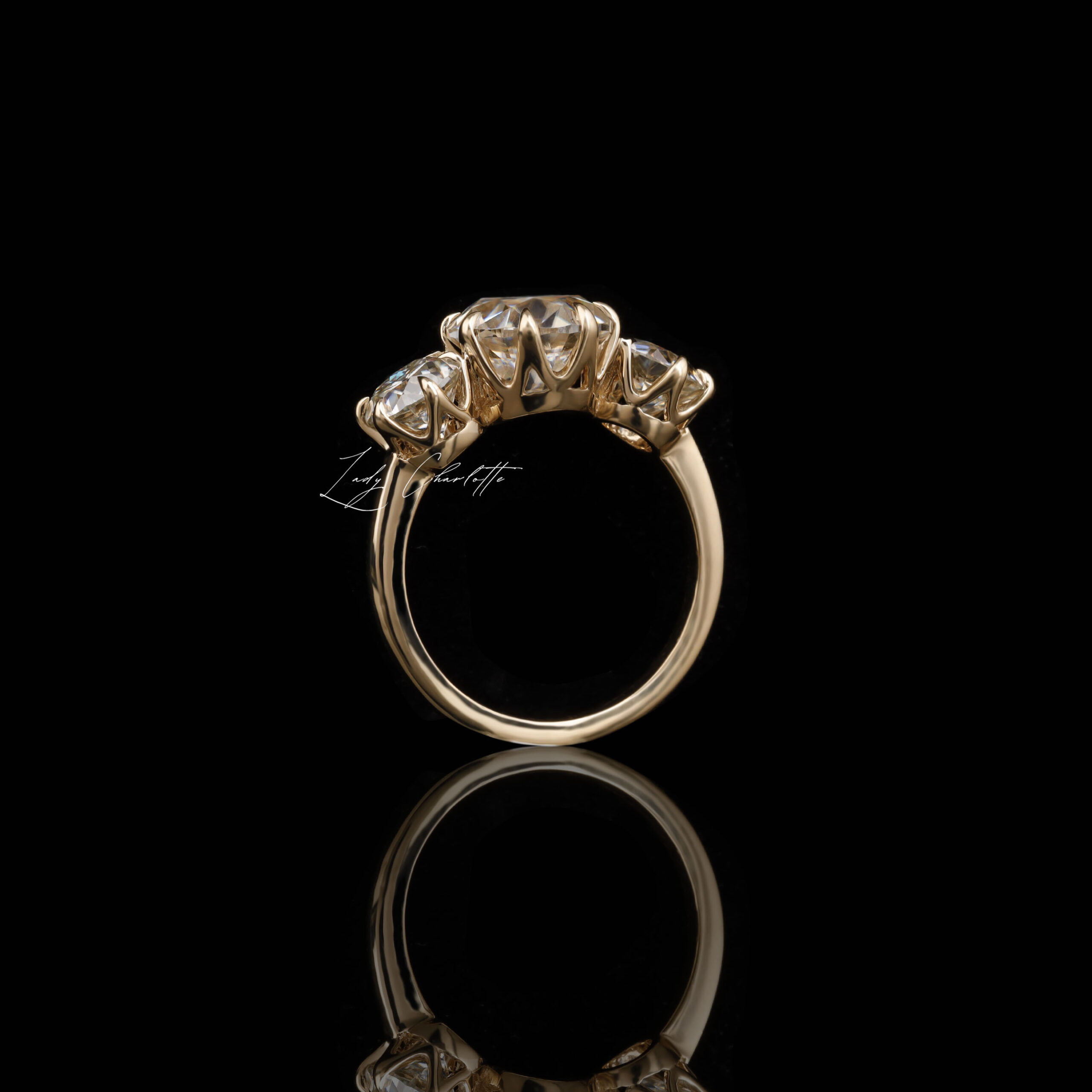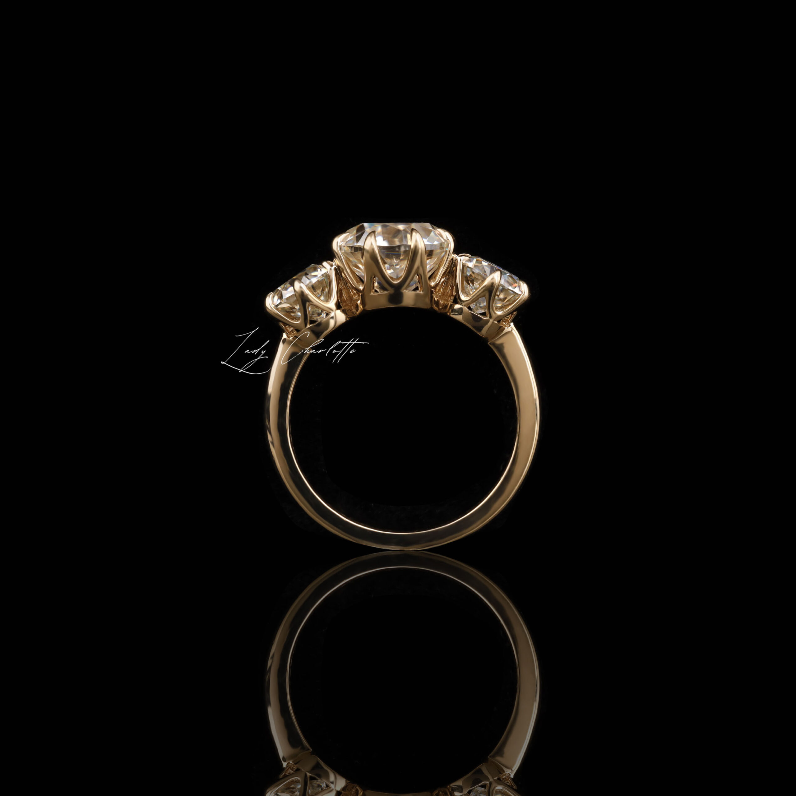 Sophisticate radiant moissanite center. Timeless custom band ensures versatile sparkle.