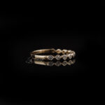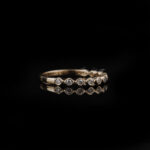 Inspired by tapered antique, Daphne sparkles 11 1.6mm DEF Moissanite totaling 0.181 CT in a 2.6mm to 1.7mm gold taper, customizable.